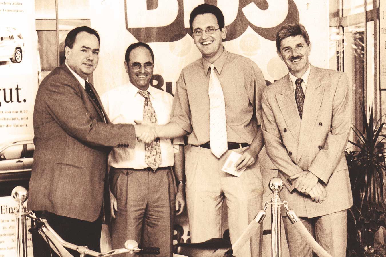 BDS-Hauptgeschäftsführer Joachim W. Dörr verabschiedet seinen Mitarbeiter Dr. Göck im Jahre 1998 zusammen mit Vize-Präsident Wolfgang Stern und Landesschatzmeister Wolfgang Bauer.