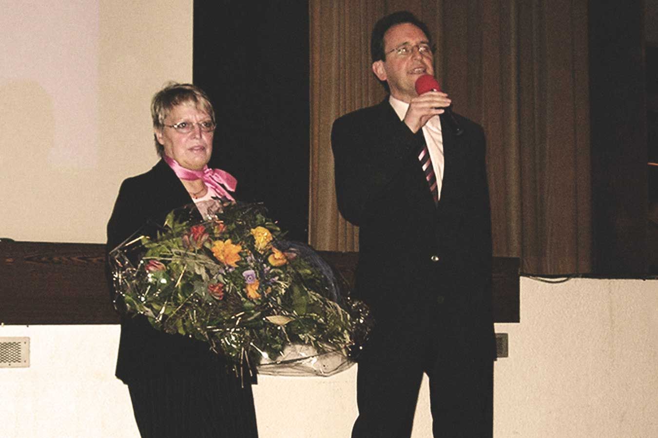 Der wiedergewählte Bürgermeister Dr. Göck dankt am Wahlabend 2006 seiner Lebensgefährtin Margareta Klasen für ihre Unterstützung